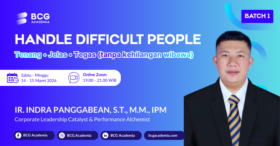 Kelas ini cocok untuk Supervisor, Team Lead, Manager, HR/L&D, Project Owner, dan profesional yang sering berhadapan dengan tim atau klien yang menantang.